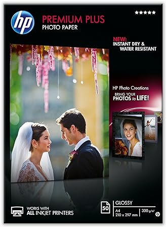 HP Premium Plus CR674A - Papel fotográfico brillante (50 hojas, A4)